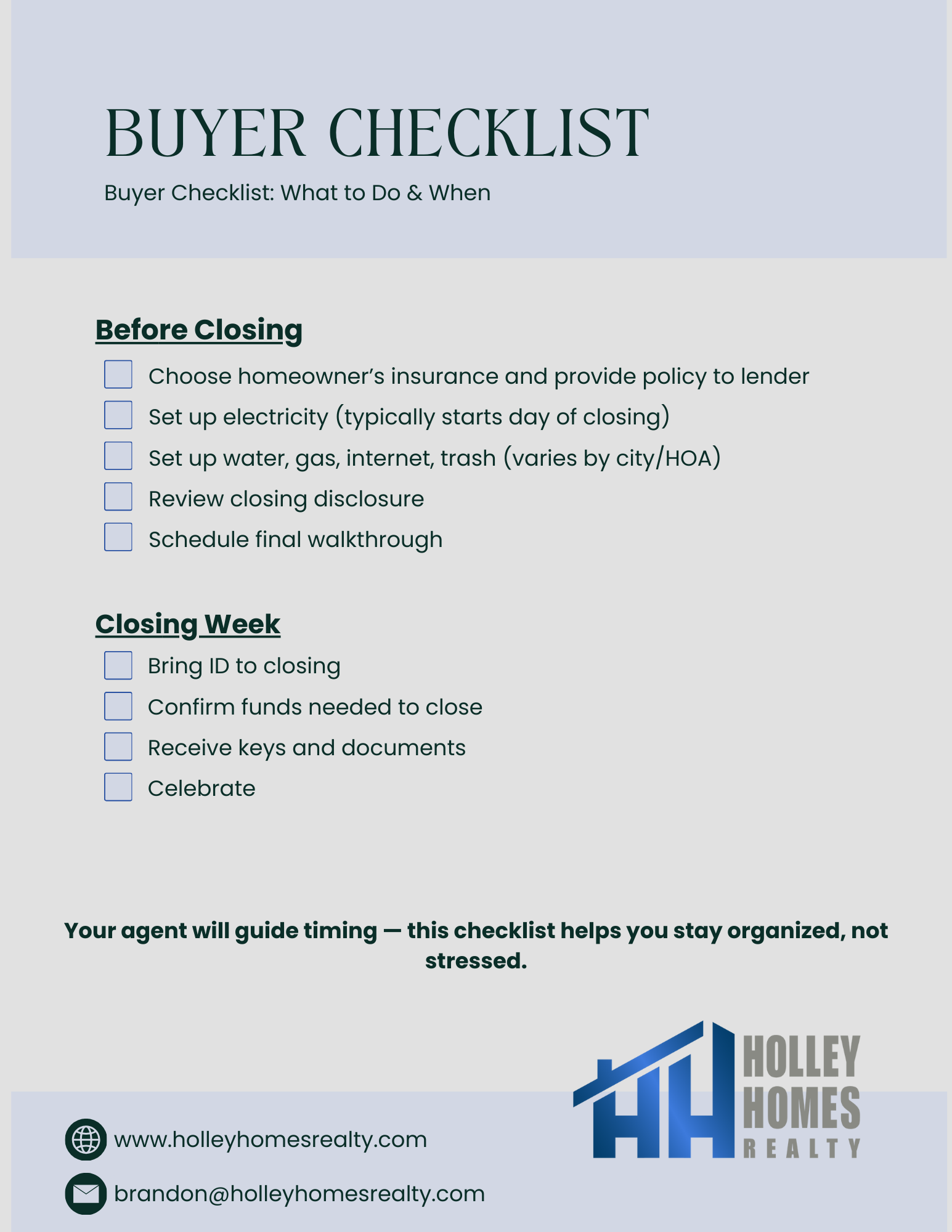 The Holley Homes Realty Buyer Guide was built for buyers who want clarity, not noise. It explains each part of the process from pre-approval to closing day. You’ll know what to expect, when to act, and how to make smart choices along the way.