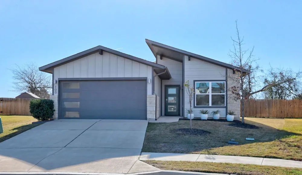 Discover the perfect blend of contemporary style and cozy functionality?, nestled in a quiet cul-de-sac?. This home offers an efficient, functional, and cozy design with striking curb appeal. The exterior features a double front 4-pane glass garage door accented by board-and-batten and white stone trim. Inside, the light-filled layout includes 3 bedrooms and 2 bathrooms, with an elegant wainscoting?decorative wall at the entry, family room, and dining area. The interior features durable vinyl flooring, recessed lighting, and windows that invite natural warmth.? Retreat to the spacious Primary Suite, boasting a ceiling fan and a luxurious ensuite bathroom complete with a double vanity, sleek shower stall, and an expansive walk-in closet. The ?covered patio and large, fully fenced backyard offer the perfect private ?area for outdoor entertaining and play. Experience modern living at its finest!