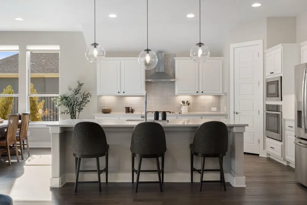 Marketed as a 4-bedroom, the 4th bedroom is currently set up as a second office and can be easily converted to a bedroom, guest suite, or nursery. This gorgeous open-concept home delivers the space and flexibility people actually need, with 3 full bathrooms and a layout that works beautifully for kids, visitors, or in-laws when they come to stay. Two separate office areas make day-to-day life easier, and the standout is the incredible workspace with double built-in desks, ideal for two people working from home, a homework zone, or a playroom and school room combo. At the heart of the home is a light-filled kitchen and dining space, anchored by a generous center island that invites gathering, casual meals, and entertaining. The open flow into the dining area creates a bright, welcoming space for everyday living and hosting alike. Just beyond, a covered back patio is perfectly positioned for those who love to grill and enjoy outdoor living year-round. Out back, you’ll find a manicured backyard with an inviting outdoor wood-burning fireplace that sets the vibe for cozy nights, gatherings, and weekend hangs. With no steps at the front or back, the home lives easy, and the 3-car tandem garage gives you that extra breathing room for storage, hobbies, or the “we have too much stuff but it’s organized” lifestyle. Exceptionally well kept and ready to be loved. *Note: Select photos include digital grass and shrub enhancement due to winter freeze and seasonal dormancy. Actual square footage to be verified by buyer.*