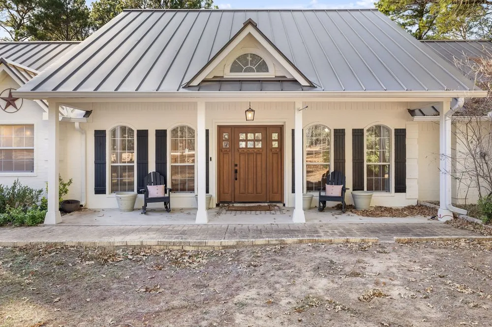 Welcome to 126 Pine View Loop in Bastrop. An exceptional, fully remodeled home set on nearly 2 beautifully treed acres across a rare double lot, offering privacy, luxury, and space. This stunning property has been redesigned with high-end finishes and today’s most desirable colors and materials throughout. The open living area, kitchen, and breakfast nook feature vaulted ceilings accented by beautiful faux beams, elegant chandeliers, high-end fan fixtures, and recessed lighting, all bathed in natural light from large windows. The chef’s kitchen is a showpiece with quartz countertops, a massive island, custom cabinetry with glass uppers and interior lighting, and luxury flooring. The primary suite is truly expansive with vaulted ceilings and room for a sitting area or additional furniture. The impeccably remodeled primary bath includes a standalone soaking tub, quartz double vanity, designer mirrors, and gold fixtures throughout the suite. French doors from both the living room and primary bedroom open to an enormous concrete patio overlooking the peaceful, tree-filled acreage. Secondary bedrooms are located on the opposite wing for privacy. The half-story upstairs is currently set up as an office with built-in desks that can easily be removed to suit other needs. Additional features include a secure storm shelter, three-car garage (two front-facing plus a separate side garage), metal roof for durability and insurance savings, fresh interior and exterior paint, and a long private driveway leading to a picturesque front yard and covered front porch. Enjoy a quiet country feel just minutes from shopping, dining, and amenities.