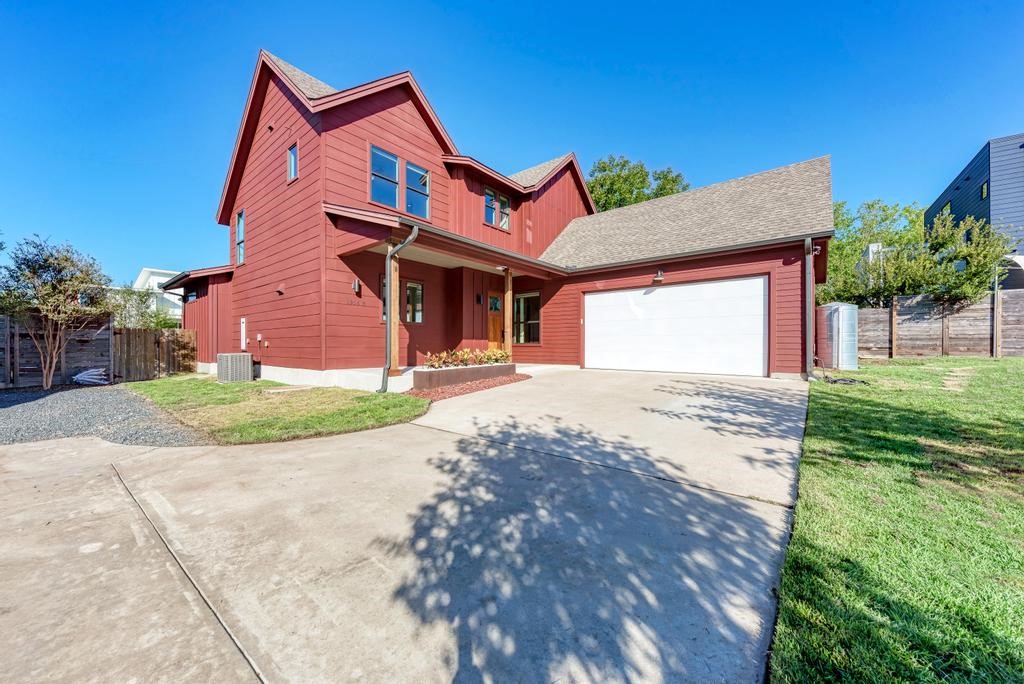 Gorgeous modern farmhouse in the heart of Austin! This stunning home sits on over a quarter acre lot in this four-home re-subdivision, NOT A CONDO! Walking distance to Mueller parks, trails, and farmers market, 2.5 miles from downtown Austin, 15 minutes from Austin-Bergstrom International Airport, less than 1 mile from Morris Williams Golf Course. NO HOA. Full sprinkler system and rainwater collection tank. Designer finishes galore! The interior of the home features cathedral ceilings, beautiful flooring, bright white cabinets, quartz countertops, waterfall island, Bosch stainless appliances, tankless water heater, large windows to let in tons of natural light. Primary bedroom with high ceiling on main level along with an office that can also be used as a 4th bedroom and a full bath. Primary bath has walk-in shower, dual vanity, and walk-in closet. Two additional bedrooms and bath are located on the 2nd floor that overlooks the dining/living space below. The outdoor entertainment space offers a huge, covered patio for outdoor dining as well as an adjoining gravel patio area perfect of a fire pit and chairs.