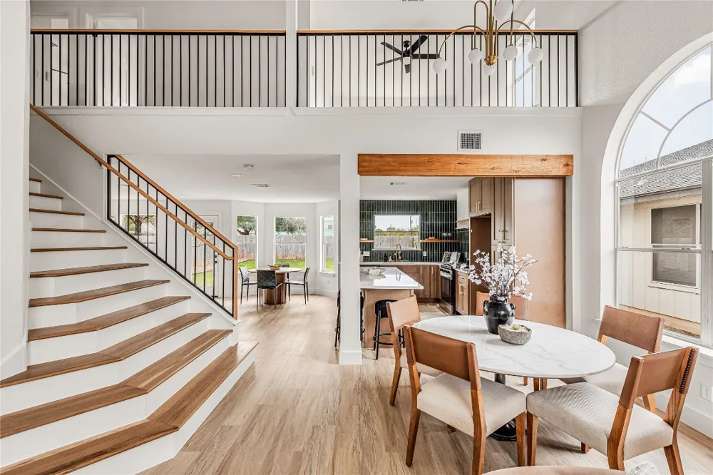 Extensively updated with thoughtful upgrades throughout, this home offers a move-in-ready opportunity with major systems and finishes completed in 2025. Recent improvements include roof and HVAC system replacements, professionally cleaned ductwork, luxury vinyl plank flooring, updated lighting fixtures, select window replacements with additional windows repaired, and fresh interior and exterior paint. The open and flexible floor plan includes multiple living and dining areas on the main level with an additional living space upstairs - ideal for entertaining, everyday living, or accommodating one or more in-home offices. The kitchen has been fully updated with new stove/oven, dishwasher, microwave, vent hood, wine cooler, built-in cabinetry, refreshed finishes, and updated lighting. The primary suite showcases a beautifully remodeled bathroom with a separate walk-in shower, soaking tub, quartz countertops, and modern fixtures. In addition, the primary bedroom also enjoys excellent natural light, enhancing the comfort and retreat-like feel of the space. The home is filled with abundant natural light, creating a bright and welcoming atmosphere in both the main living areas and bedrooms. Guest bedrooms are generously sized and feature recently installed ceiling fans with integrated lighting. Out back, enjoy a large backyard with a wooden privacy fence and no neighbors directly behind, offering a peaceful setting with added privacy and space for outdoor living, pets, or future enhancements. With extensive renovations already completed and timeless finishes in place, this home offers turn-key living.