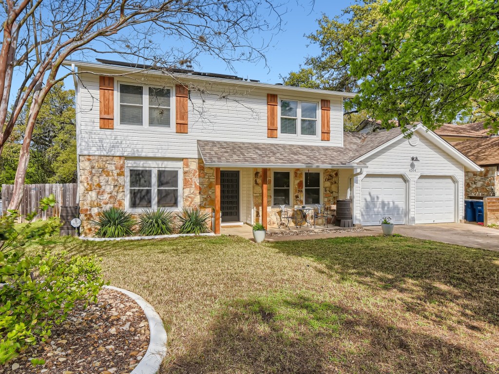 Wonderful Westcreek greenbelt lot. Improved with many nice features including open kitchen and updated baths. Energy friendly solar panels and updated windows lowers the cost of owning this home. Extra room (11 x15) in backyard, not in SF, has wood floors and AC perfect for home office, hobby or peace and quiet. Six foot wrought iron fence adds to the enjoyment of backyard. Gate allow access to the path in greenbelt! Luxury laminate flooring on stairs and second level installed in 2020. Enjoy the great trees, playscape and greenbelt views from large deck! Westcreek is one of the rate neighborhoods that has elementary and middle school on its edge. Little park at the end of Brush Country Rd is a shortcut to the schools. Easy access to both 290 and MoPac. Nearby amenities include Paneras, Flores, Lildoddy, Whole Foods, Costco, Starbuck, convenience stores, Cypress Grill and more!