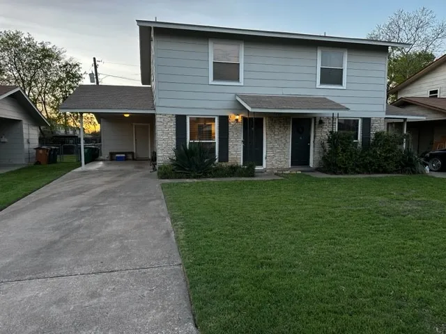 Two story duplex with carport and backyard (this is for side A). Living room, dining room, kitchen and laundry room down, two bedrooms and full bath up. There is also a half bath on the way up the stairs. Great location too. New roof in 2025. Major Remodel in 2023: New paint, flooring (no carpet in unit), new interior tri-panel doors & hardware, remote control ceiling fans with light dimmers, new light fixtures, new baseboards, full bathroom remodel. All new kitchen cabinets, counter tops and appliances. Added added second a/c unit dedicated to upstairs. New windows and exterior paint completed in 2021. Large walk-in closet in master. Tenants are responsible for utilities and yard maintenance. This is a non-smoking and no pet unit. 12 month minimum